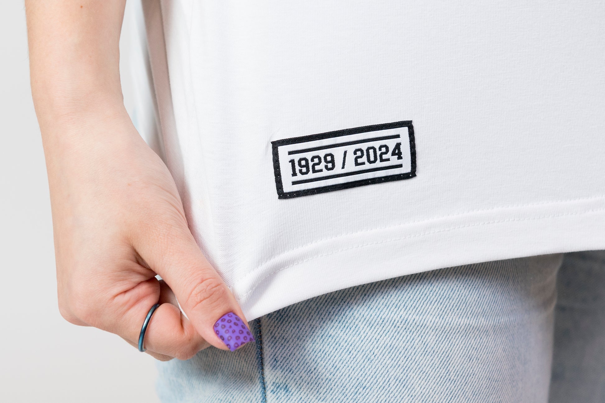 - Naszywka "1929/2024" na dole koszulki